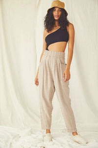 baggy taille haute monte élégamment au-dessus des hanches. Enfin, le
